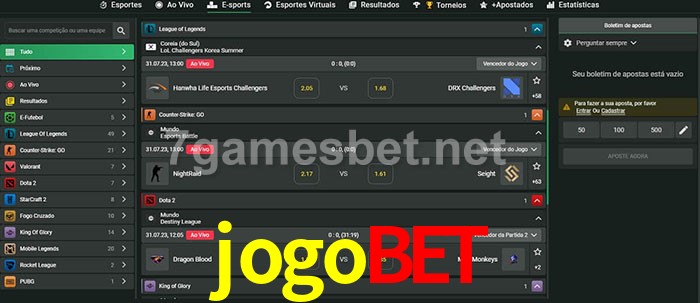 O jogobet oferece uma grande seleção de opções de apostas em e-sports com probabilidades competitivas